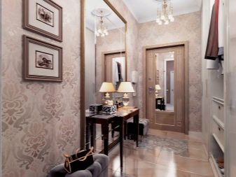 The interior looks harmonious due to the overall symmetry. Natural, natural materials are used. Finishing materials are selected in accordance with the general warm color scheme. Due to this, a holistic space is created. Decorative elements look rich and luxurious. The general style will be supported by paintings or tapestries. Neoclassicism needs enough space, so this style is ideal if your hallway is spacious enough.