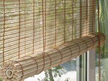 Rolled bamboo curtains are perfect for interior in eco style. In this case, she hides the exit to the backyard.