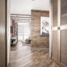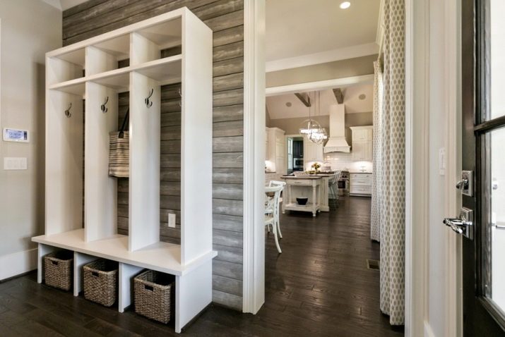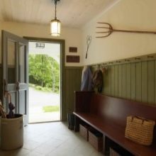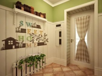 Laminate is in harmony with rooms decorated in the style of Provence and country, if you prefer eco style, then all the vertical surfaces in the corridor can be trimmed with lamellas.