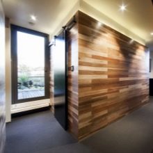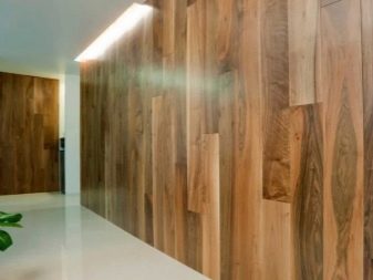 Lamels can be placed exactly one above the other, or they can be laid out in an intricate mosaic - here everything depends only on your personal preferences and the stylistic decision of the decor as a whole. The panels can be the same or have different lengths, but in any case their thickness must be uniform, otherwise the pattern will be biased, and the design will lose its decorative effect.