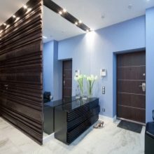 Vertically located lamellas are most often used for cladding hallways - this room in typical high-rise buildings is small, and thanks to a simple reception, this defect is visually compensated.