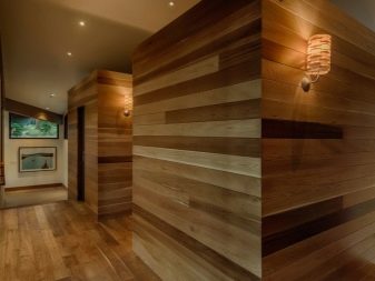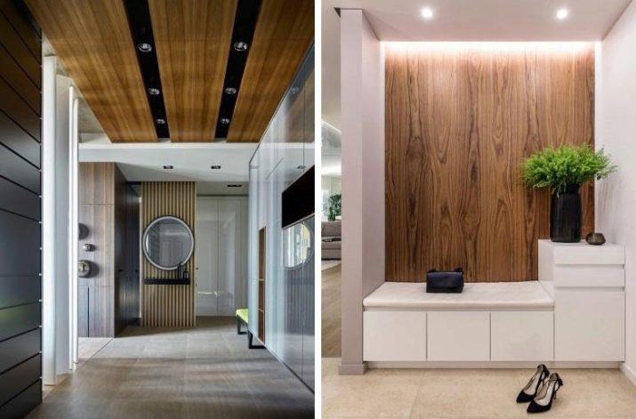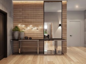 The selection of material for wall decoration should be based on the characteristics of the decor of the room, as well as on what facing materials were taken for the floor and ceiling. With the help of laminated plates, it is possible to effectively design the entrance area, where households take off their shoes and outerwear - this is a moisture resistant and easy to clean material, therefore it will be appropriate where the walls are especially susceptible to pollution.