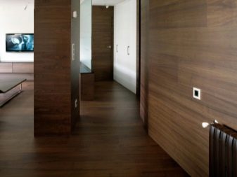 - Unfortunately, the laminate can not be called thin material, therefore, after installation, the dimensions of the corridor are slightly reduced, this decoration material is not suitable for very cramped rooms.