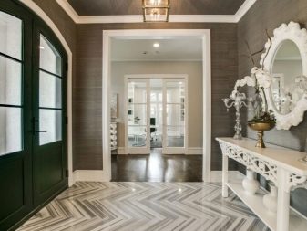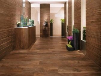When fixing the plates parallel to the floor, it is possible to achieve visual stretching of the room and the expansion of its boundaries. Corridors designed in this way become more spacious, light and airy, Such a solution looks especially impressive if strengthened with small inserts from darkened mirrors.