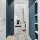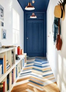 Color allows you to create visual effects. Narrow hallways often seem too tall. Painting the ceiling in a dark shade will allow you to visually lower it. And this is not about black.