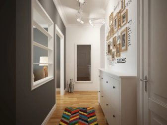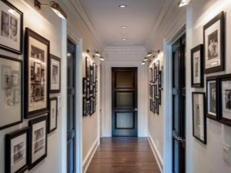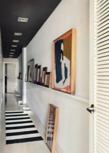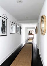 - Photos and paintings will give the narrow entrance hall more family comfort. You can arrange a collage, or arrange individual frames horizontally.