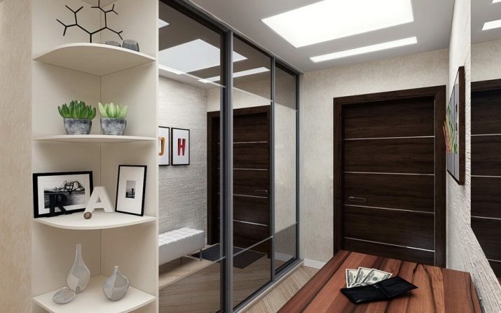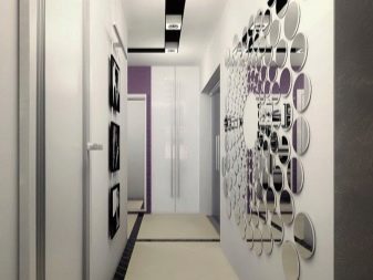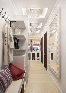 The interior should look complete, otherwise the shortcomings of the narrow hallway will be striking again and again. Only it is impossible to use a lot of decorative elements, otherwise they will begin to crush, making the overall situation heavier. In general concept paintings from mirror mosaics look fine in subtle light frames.