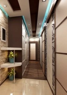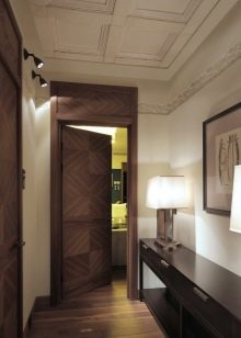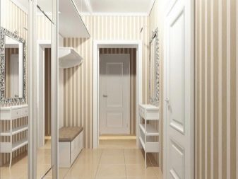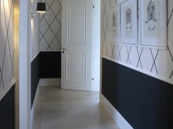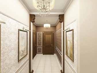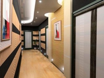 A narrow hallway often looks dark and ominous only because of the wrong approach to design. Colors and lines literally transform the room beyond recognition. Light shades should dominate. This color can be combined with a darker one, which can be placed below.