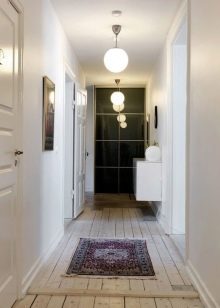 - Even in a narrow corridor you can make a luxurious design. Light colors and a lot of light do their job.