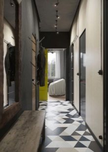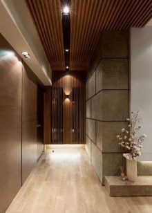 - Urban and modern. Well suited for old houses with narrow hallways. A dynamic interior is created. It is noteworthy that harmonious elements create a sense of lively presence. Natural shades are used.