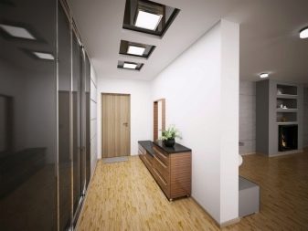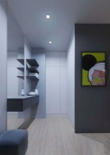 - A stylish corridor where only the most necessary furniture is located. Successful zoning visually expands the space.