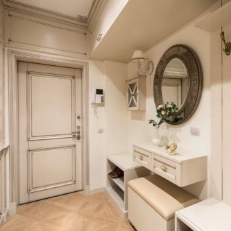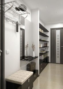 - Bench or ottoman. A small place where you can sit down and change your shoes with comfort. In some cases, there may be a shoe niche inside.
