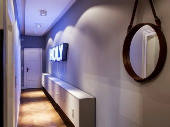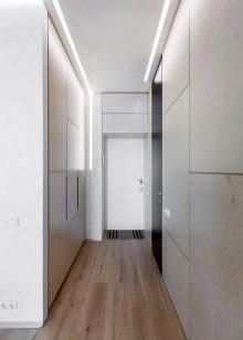 A narrow hallway is often left without attention, but in vain. The room allows you to realize quite interesting design ideas. Properly selected finishes and lighting will make the entrance hall visually larger and more attractive. Care should be taken to the decor, its excess will greatly load the space.