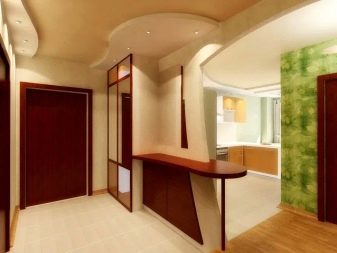 The latter method can be implemented in a slightly simplified version. It is worth getting rid of the nearest interior wall. There will be a feeling that the hallway, as it were, merges with the aisle, the space becomes many times more. Sunlight will break through the corridor.