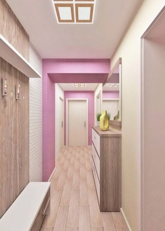 Differentiation into zones allows you to make a narrow room more functional and proportional. Minimum provision should be made for the entrance and lobby. The project must be built on the basis of the corridor squared. Zoning Methods: