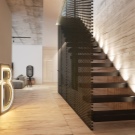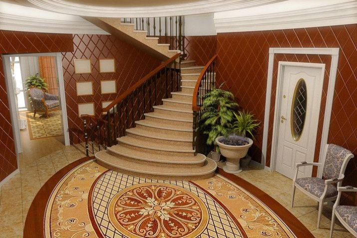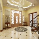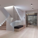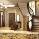 - Cozy hall with stairs. In the room there was a place for living plants, and for a complete set of furniture. Arched openings create unusual visual effects.