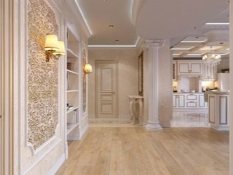- The classics. This style allows you to use spectacular decorative techniques. Stucco molding and gilding, marble and granite in decoration, natural fabric or expensive paper wallpaper. The room uses luxurious expensive decor, forging, crystal.