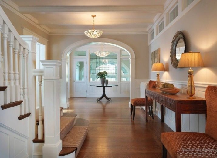 In modern housing, halls often have an increased area, they can already be turned into a full-fledged part of the house, effectively decorated. Here you can apply interesting design ideas, create arched openings, niches, podiums. Fresh flowers or bright posters, family photos or book shelves look interesting in the lobby.
