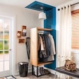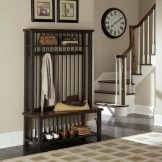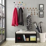 If the hallway is small and impossible to furnish it with cabinet furniture, hangers will be quite enough. It may look like a separate floor structure or panel with hooks.