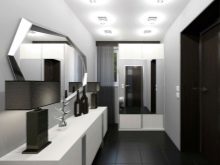 So, in small spaces, preference should be given to white and nude shades. It will be useful to trim one of the walls with materials with reflective properties. It can be glossy panels or wallpapers with a metallic effect. In order to visually raise the ceiling, you need to use a coating with vertical stripes.