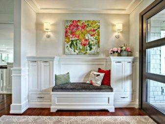 In private homes, hallways often abound in space, because here you can arrange a "green corner" - put pots with fresh flowers. Plants, no doubt, adorn the entrance area and enliven the interior. Alternatively, you can use compositions of artificial flowers, rounded in spirals of branches or figurines.