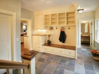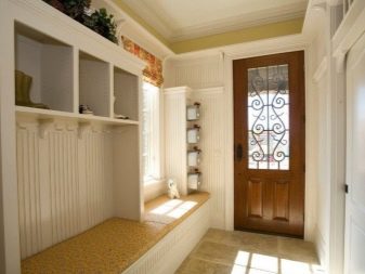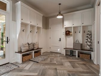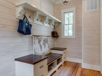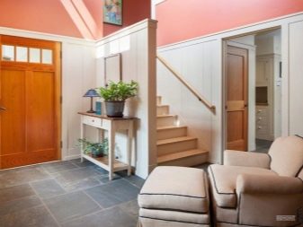 It's no secret that people enter the hallway of a summer house or private house almost from the street, here they take off dirty shoes, open wet umbrellas and put their bags on, and besides, cold air often penetrates here. That is why for decoration it is necessary to use practical moisture-resistant materials that are quickly cleaned, and under the influence of temperature fluctuations they do not deform and do not lose their technical and operational properties.