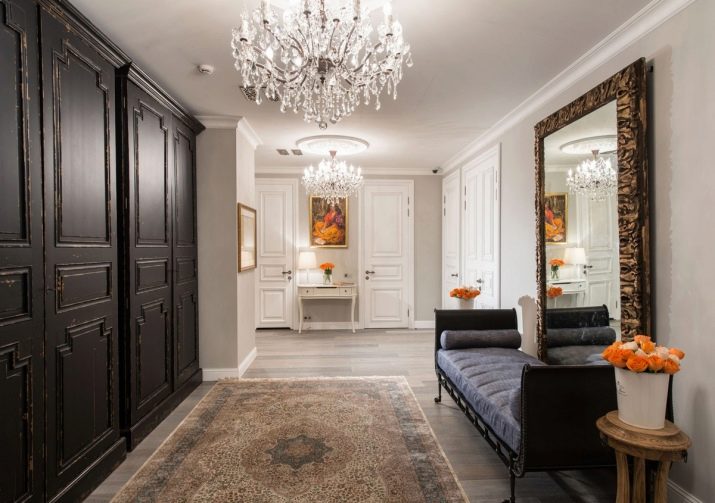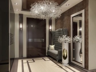 Keep in mind that the chandelier in the entrance corridor should not hang too low - it is unlikely that you will like the prospect of constantly bending down, passing under the light fixture.