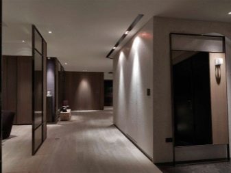 With the help of a properly selected arrangement of lamps You can visually adjust the parameters of the room. So, in long and narrow corridors, point devices are mounted equidistant from each other. If the ceilings are too high, then give preference wall sconces and in order to stretch the room vertically, use parallel lighting on the floor and ceiling.