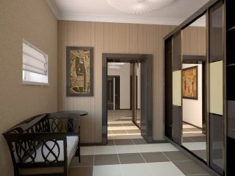 Designers recommend use mirrors for a visual increase in the area of the hallway.However, you need to be careful with them - if you hang them opposite each other, then you will feel an uncomfortable feeling of a long transition. It is advisable to place them opposite the window - in this case, the surface will reflect and illuminate the hallway, making it more interesting.