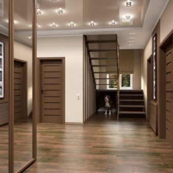 In modern mansions, hallways are made large, however in old-style buildings they are most often small, narrow and dark. You can adjust the dimensions with the help of a correctly selected shade of finishes and good lighting.