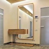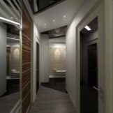 - Use of mirrors and furniture with a glossy surface. The mirror is the main accessory in the interior of the hallways, it increases and deepens the space of the room. A good solution is to install large mirrors or purchase a cabinet with doors that have a mirror surface. It is interesting to combine mirrors with glossy ceilings in the interior.