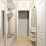 To originally decorate and decorate a small and gloomy hallway in the "Khrushchev", it is not recommended to use a lot of decorative elements. An ideal option would be if one of the walls is glued with murals or a small picture is posted that matches the theme of the style. You can make a completely mirrored corridor, for this you will have to mount large windows and mirrors in the walls and doors. Illumination of the darkened corners will complement this beauty.