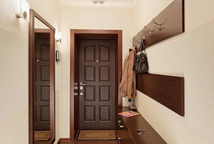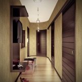 - Brown. It is considered one of the symbols of comfort and domestic warmth. In addition, the color of dark wood gives the room solidity. In the design of small hallways, brown combines well with a bright peach, golden and beige shade.
