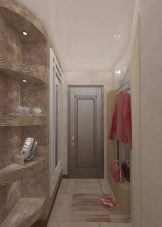 This type of layout is mainly found in the "Khrushchev", where the corridor has an area of not more than 2.5 m2. Compared to other types of layout, the room “pleases” with its shape, which can be rectangular or square. This greatly simplifies the design of the room and opens up great opportunities for the implementation of various stylistic ideas. Tambour, as a rule, has a niche. Although it should serve as a storage room for developers’s projects, designers in their projects use it to place a built-in wardrobe.