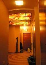 The finishing touch in the design of any room is considered to be the ceiling decor, and the entrance hall is no exception. To prevent the ceiling from contrasting with the general look of the interior, use neutral shades. Often in the corridors of "Khrushchev" the ceiling is painted, but this requires a perfectly flat and smooth surface.Therefore, the finish begins with plaster and priming. It is much easier to install a suspended ceiling, in addition, it will give the room a modern look.