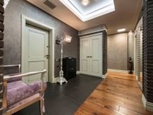 Stylish track suspensions fit perfectly into the loft style concept. They are an aluminum tire equipped with several flashlights. The height of the tire may vary depending on your wishes, also the shape of the bulbs is selected according to your taste. Primitive Soviet plafonds are also perfect for the atmosphere of such a hallway.