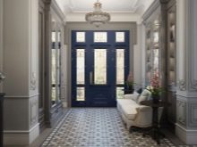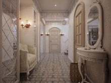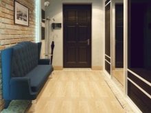 To the sofa looked harmonious in the hallway, it is important to adhere to the chosen style. IN classic interior elegant models with fabric upholstery of calm noble shades fit in.Usually these are beige, brown tones. For upholstery, you can also choose a burgundy, dark green or deep blue tone.