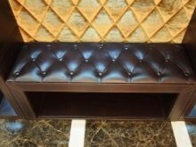 - A neat sofa made of MDF and leather with a curbstone will decorate the modern hallway.