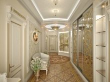 When choosing the dimensions of the product, you should focus on the dimensions of the hallway, as well as the presence in it of space free from other furniture. In the spacious room you can put a medium-sized sofa. Typically, in such hallways there is a separate cupboard and cabinets, so the item can perform an exclusively decorative function and can only be used for seating.
