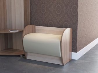 Such models can be found infrequently, but in some cases it is justified to buy just such an option. For example, if the corridor is too small and square, you can fit a sofa with a curbstone into the corner. A soft corner model may be appropriate in a spacious lounge. In this case, it will allow several people to sit down at the same time. If you have a large family, you can put on shoes at the same time, and not wait in line at the seat.