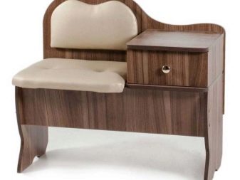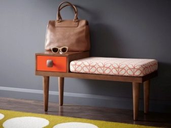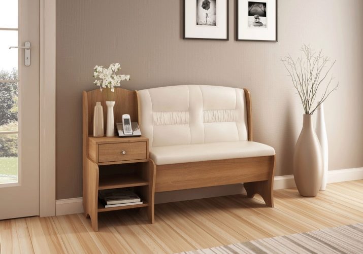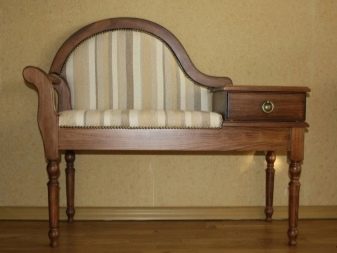 This variety is a piece of furniture with a back. It may resemble a miniature model of a traditional soft sofa or look like a street bench from a park. It all depends on the design and the selected materials. Such models are suitable for spacious hallways and medium-sized corridors, where there are already nightstands with drawers.