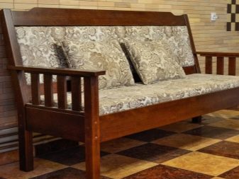 Appropriate wooden products in the styles of country and Provence. For the first style, brown products of a natural wood shade are suitable. In the latter case, the tree is often painted white or gray. The sofas stylized as rustic furniture have simpler forms.