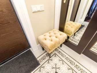 If there is a lot of space in the hallway, you can put a small couch here with a berth. On ordinary days, the item will serve as a banquet, and if necessary it will be laid out and converted into an ottoman for one person. By purchasing such furniture, it is worth carefully considering the place of its placement. In this case, it is important to consider the size of the sofa when unfolded.