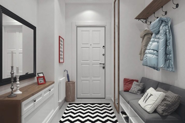 In the small corridor there is a place only for a mini-model. In this case, it is worth considering the possibility of combining several functions in one subject in order to rationally use the available space. If the corridor is narrow, it is better to choose a small bench. If the room has a square shape, it is possible to install a wider roomy sofa with a back and even with decorative pillows.