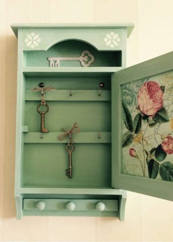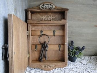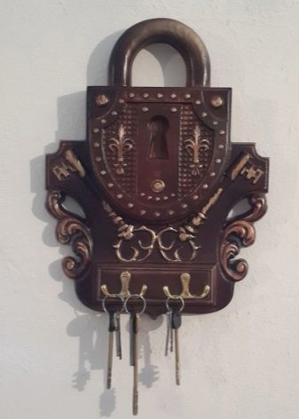 To keep the ligaments always safe, you can make a key holder with a built-in lock. This will hide the contents from prying eyes and restrict access to it by prying people. The lock on such a drawer or box may be coded, have latches or can be closed from the inside. Inside this design, special mounts are provided.