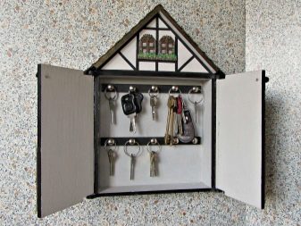 In a private house or apartment, it is better to choose the option of a wall shelf, placing it close to the front door. Considering that strangers may come into the house, it is worth considering the option with a built-in lock or other secret. This will allow the keys to always be in place, but they will not be able to take strangers.