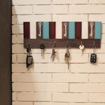 In large organizations, you can see large stands with specially adapted hooks or key boxes. Usually they are signed, which helps to quickly navigate and choose the necessary bunch for each particular room. A similar option can be used at home, for example, in the country. On such an improvised stand, you can hang hooks indicating where the keys for the barn, wicket, garage are located.