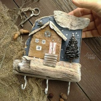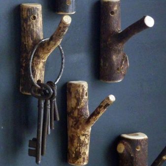 A handmade product will undoubtedly look very stylish and unusual indoors. You can make an original key holder from any means at hand. For this purpose, a piece of old driftwood, branches of different lengths and shapes is suitable. Such natural materials should be well cleaned of dust and dirt, then clean the chips with sandpaper. At the end, the product is varnished or painted. It is important that the color of the product to be painted fits the general background. If you pick up a snag with small branches, you can additionally not nail elements for fastening to the product. Branches will serve as a place to place ligaments.