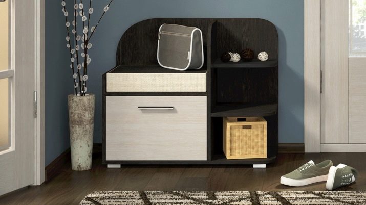 Storage products with a seat, of course, create comfort and convenience. It is pleasant to return home, sit on a soft padded stool and take off your shoes without getting up from the seat. You can also get shoes sitting on a puff.