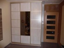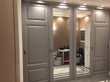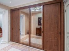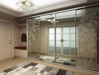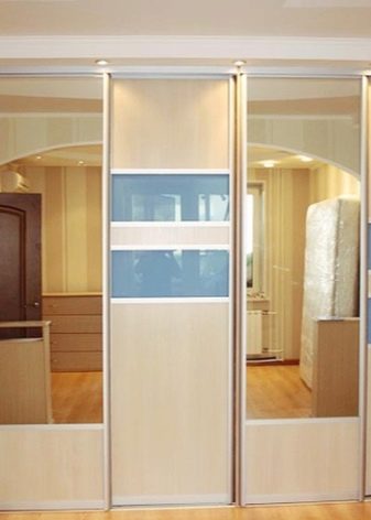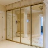 - Mirror cladding. This version has been recognized as a classic on the Russian market for several years. Each owner wants a large full-length mirror in his hallway, and this function is perfectly performed by mirror sliding doors. The minus of such doors is that the mirror quickly gets dirty under the constant influence of hands. It is also worth noting the fact that the doors of a solid mirror are heavy and fragile. It is for this reason that experienced owners are advised to choose options with partial glazing of the cabinet, where the mirror is at some specific (often average) level, and the frame itself is made of chipboard or aluminum.
